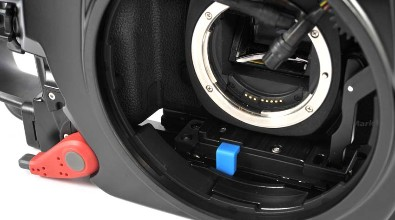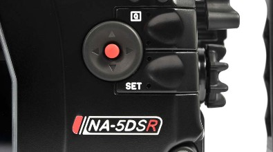 Taking a cue from Canon about stability and the reinforced tripod socket, the NA-5DSR features the new style cam locking tray system. This assures alignment and improves stability in the housing. The housing also features a standard 1/4” 20 tripod socket plus two extra sockets for reinforcement should the shooter want to use a tripod for stability underwater.